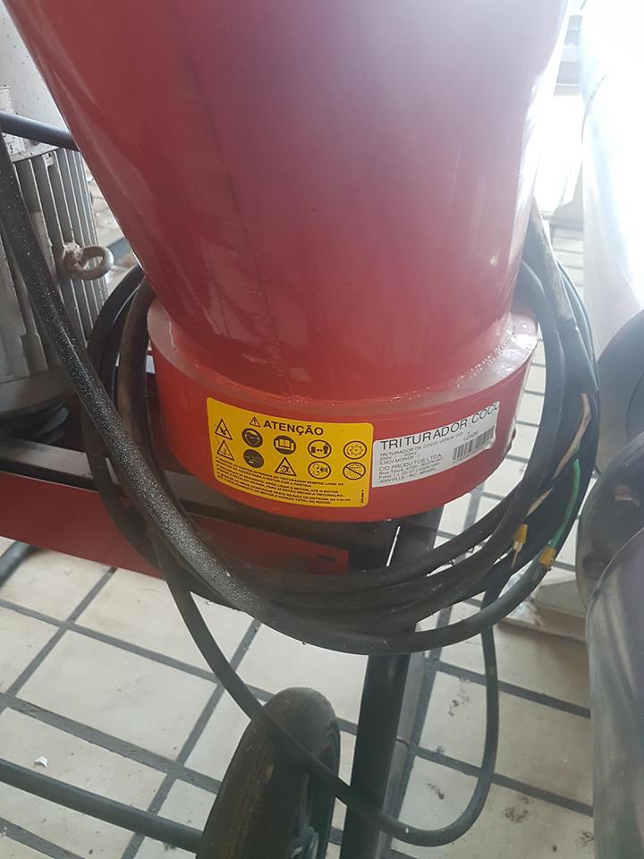 Triturador de coco verde. Marca: Cida Produtos LTDA. Motor: 5 cv (220 V/monofásico).