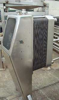 Trocador de calor marca AVP com 58 placas e entrada de 2', medindo 25 cm de largura e 85 cm de comprimento.