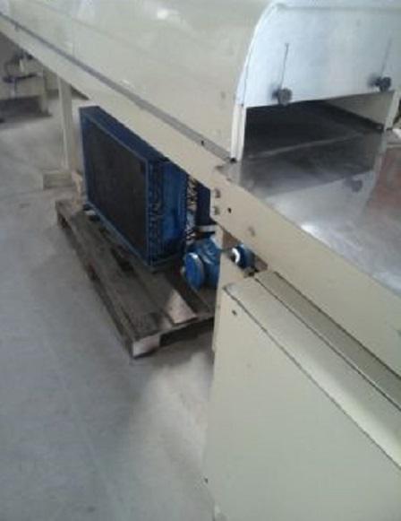 Túnel de resfriamento de 7 m marca Liteq, com capota de 300 mm de largura. Dotado de tração com sistema pneumático de esteiras.